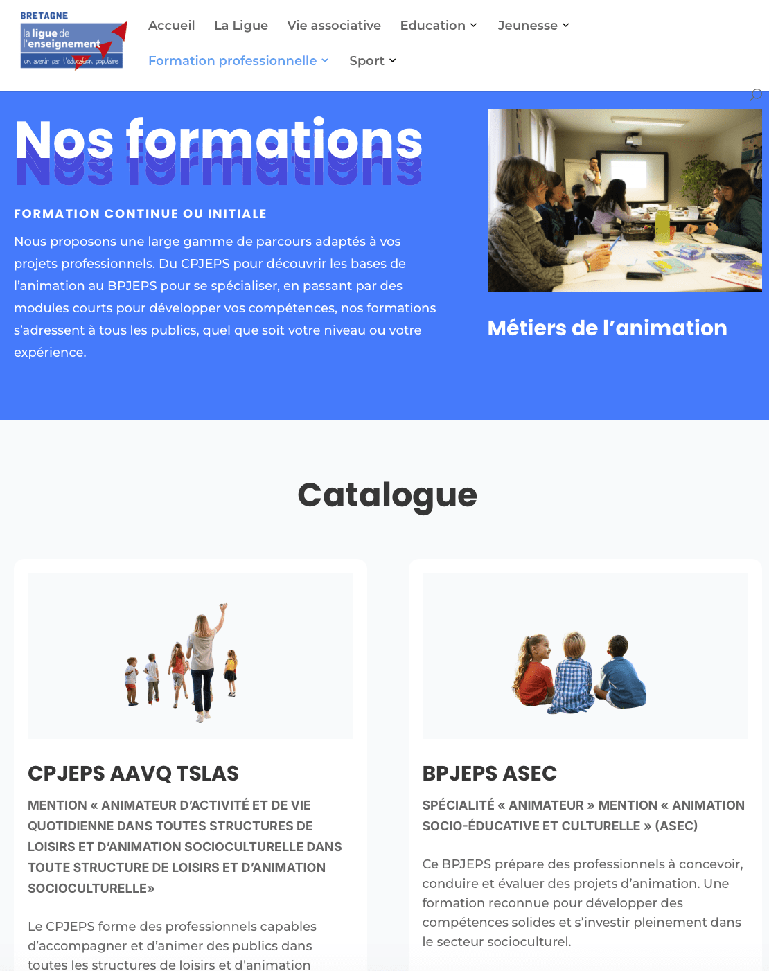 Formations CPJEPS AAVQ et BPJEPS ASEC assurées par la Ligue de l’enseignement de Bretagne sur le site de Lorient.