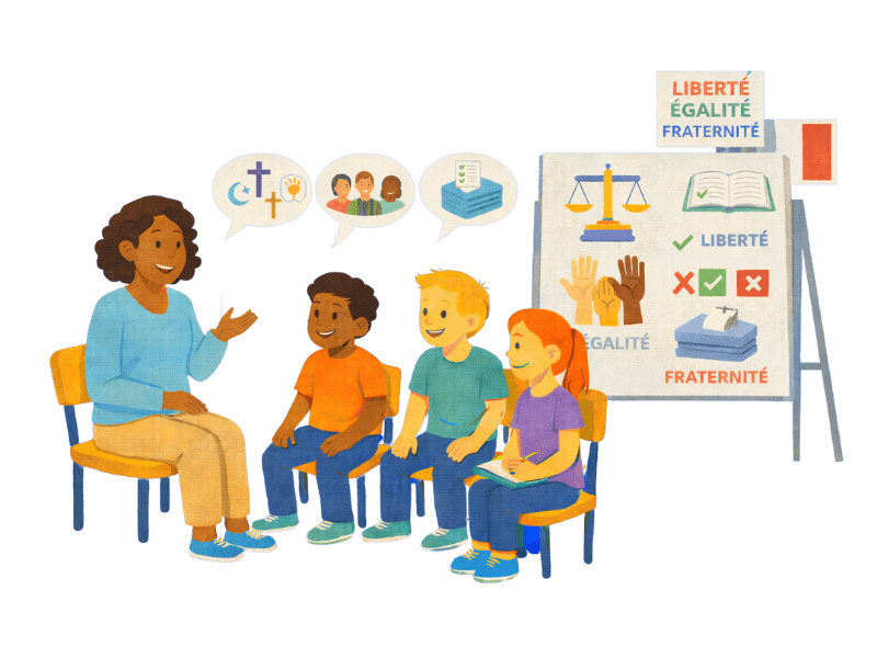 👉 Objectif : aider les élèves à comprendre la laïcité comme un cadre garantissant les libertés et le vivre-ensemble.